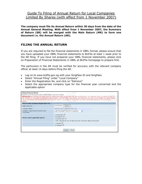 提交并确认:提交申报表并确认收到ACRA的确认通知。